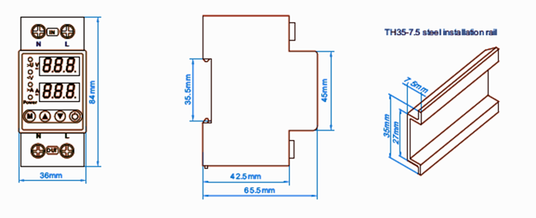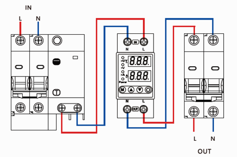 - پس از نصب محافظ، کاربر میتواند آن را متصل کرده و سطح مقطع سیم را که مطابق با استاندارد است، مطابق با اندازه جریان تنظیم شده توسط محافظ انتخاب کند. توجه داشته باشید که سیمهای ورودی و خروجی محافظ را نمیتوان اشتباه وصل کرد و اتصال اشتباه به دلیل اتصال کوتاه ممکن است به دستگاه آسیب وارد کند.